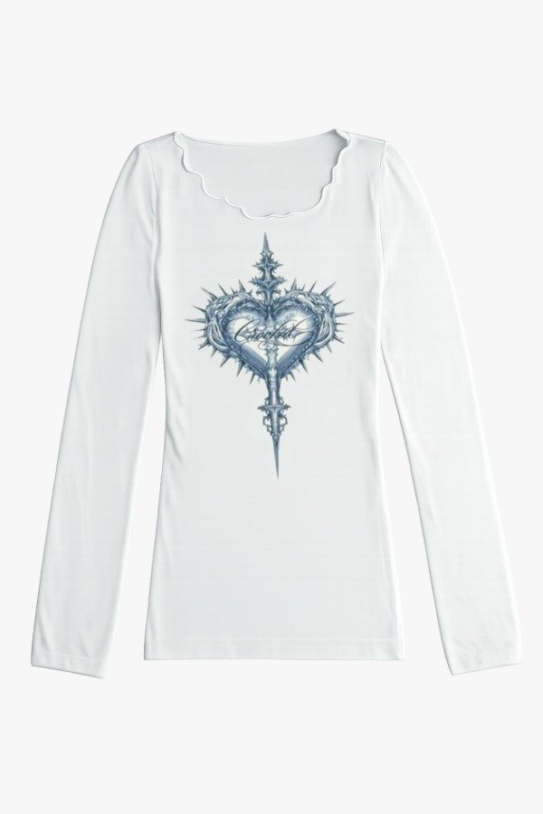 Camiseta larga de lycra semi opaca estampada.