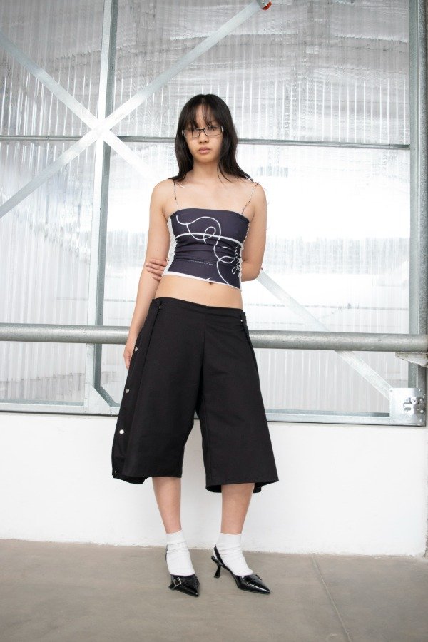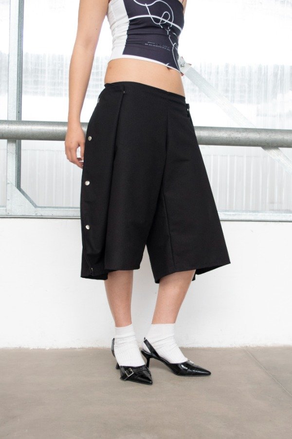 Jort de ripstop con múltiples formas de uso generadas con broches metálicos.